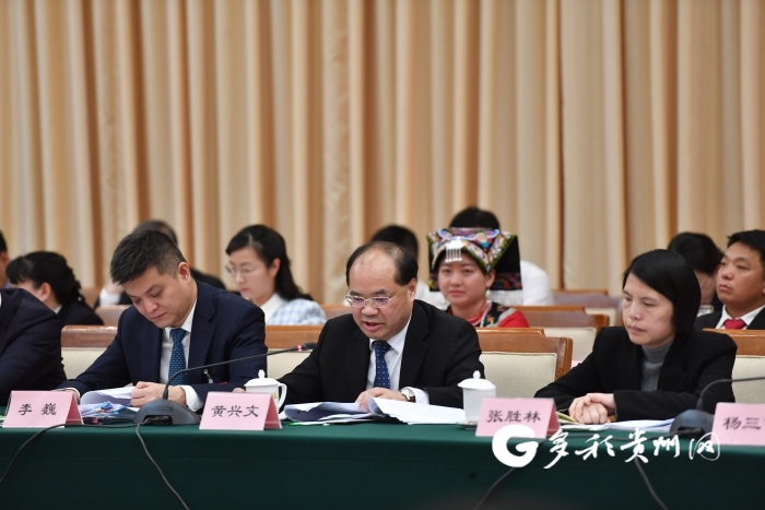 全国人大代表,黔西南州委副书记、州长黄兴文(前中)发言。本网记者 杨昌鼎 摄
