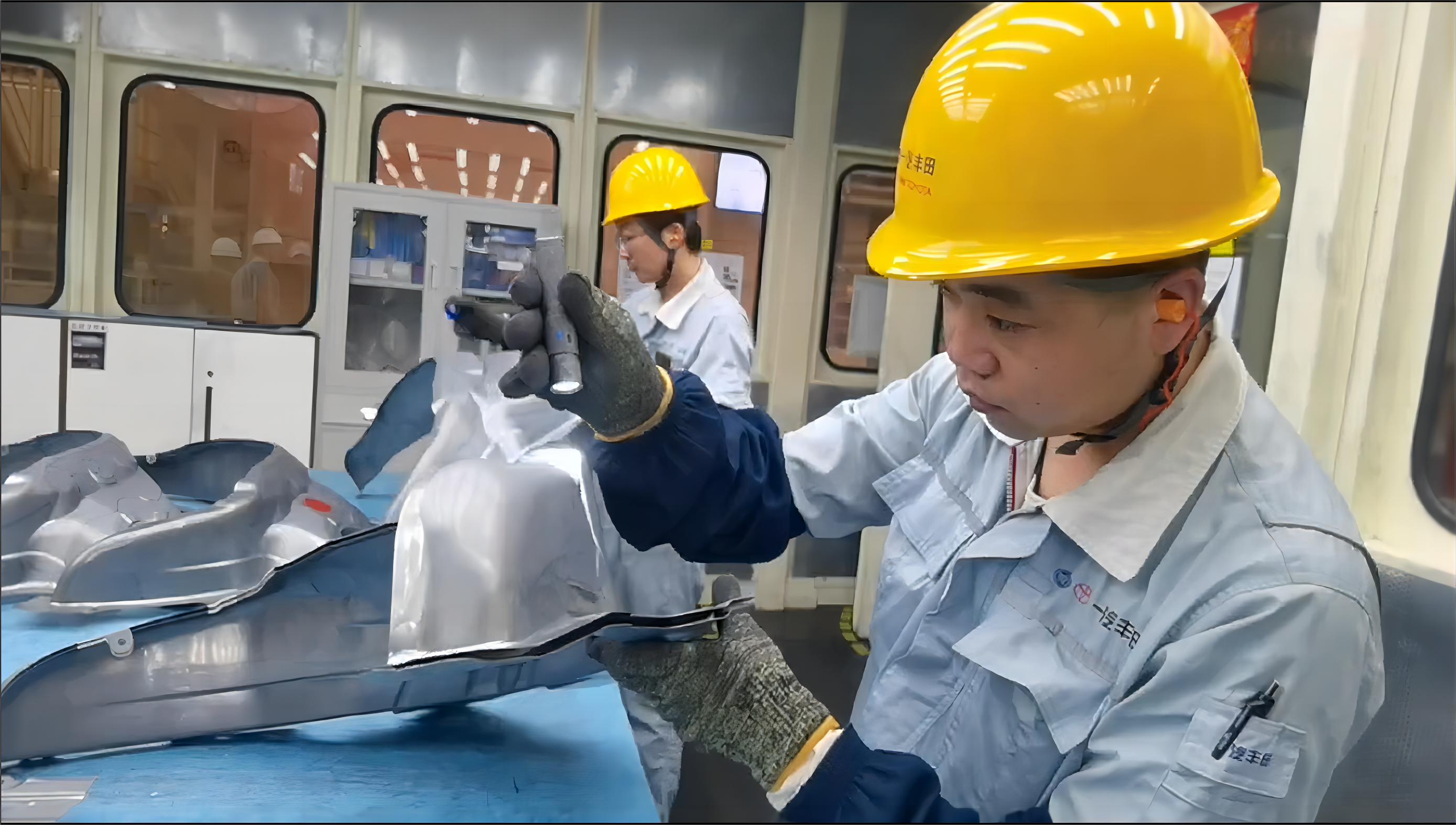 在这里,板材是有保质期的,因为板材存放时间过久其特性会发生变化,容易发生不良,影响车身品质。不仅如此,板材在冲压前还要经过“四组双面清洗工序”,涂上保护油膜,这样做,可以最大限度的保护板材,不仅要做到防锈防裂,还要兼顾到涂装前处理工序的作业,进而为涂装工程涂膜的高品质奠定坚实基础。